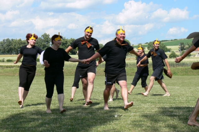 Na pouť v Klapém, která začíná zakončením školního roku se těší převážně děti a příznivci sportu. Každým rokem (a je tomu již 23 let) pořádá v sobotu TJ Sokol Klapý turnaj v malé kopané. Letošního ročníku se zúčastnilo celkem 10 mužstev. Pozvání přijal Sokol Černiv, Třebenice, Praha, Brozany, Ústí, FK Litoměřice, Horizont Litoměřice A a B, TJ Sokol Klapý A a B. Po celý den zajišťovali na hřišti občerstvení manželé Vyšatovi a novým příznivcem klapského fotbalu se stal i pan Lap Hong Trong, majitel potravin, který přivezl z pekárny v Litoměřicích krabici čerstvých koblih a zajistil pití pro fotbalisty. Předseda TJ Sokol Klapý, pan Martin Rumler společně s panem Markem Týcem předali poháry a diplomy vítězům. První místo získal Sokol Černiv, druhé FK Litoměřice a třetí byl Sokol Klapý B. Večer se konala pouťová taneční zábava, kterou pořádal Sbor dobrovolných hasičů Klapý. K tanci a poslechu hrála skupina Neon. V neděli se hrálo na fotbalovém hřišti přátelské utkání dětí proti tatínkům a svobodných mužů proti ženatým. Poprvé se o pouť uskutečnila na koupališti neckyáda. Mezi plavidly se na člunu objevila rodina pirátů, spatřili jsme indiány a eskymáky na kánoích, plovoucí postel, krokodýly, duše z traktorů, vory a dokonce i staré dřevěné necky, které se po pár metrech potopily. Všichni zúčastnění byli odměněny medailemi a buřty. Nebyla by to ani pouť, kdyby si místní ženy a muži pro diváky nepřipravili nějaké překvapení. Letošní inspirací byla kniha Ondřeje Sekory „Ferda mravenec“. Ženy si nasadily krovky a přiletěly na hřiště jako berušky. A za co byli muži?? Za úžasné Ferdy mravence, kterým nechyběl klasický motýlek s puntíky. Každý Ferda si našel svou vyvolenou berušku a pak už si jen společně zatančili na píseň „Beruško půjč mi jednu tečku, třeba tu, co nosíš na zadečku“. Jelikož obecní úřad zakoupil pro tyto kulturní akce nové hudební ozvučení zábava končila až v pozdních večerních hodinách. Akce se všem velice líbila a už se společně těší na další, kterou bude 30.8.2008 od 15.00 hodin na fotbalovém hřišti „Rozloučení s létem“.